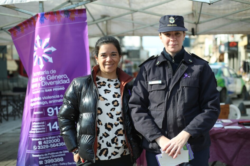 La secretaría de Políticas de Género, Mujeres y Diversidad de la municipalidad de San Pedro, en conjunto con la comisaría de la Mujer y la Familia, concretó este viernes una jornada de concientización y visibilización en la intersección de la ex Peatonal de calle Obligado y Mitre.
