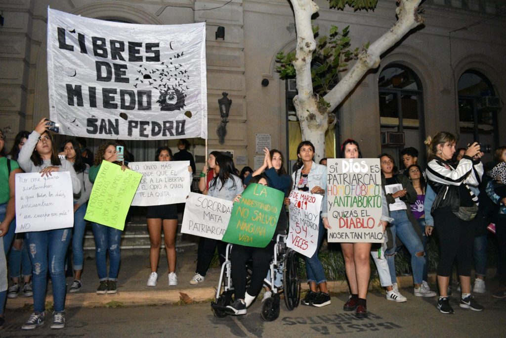 En este 8 de marzo estamos juntas, estamos más unidas que nunca. Estamos levantando nuestras banderas, nuestros reclamos, nuestras exigencias. Pedimos justicia por cada una de las compañeras asesinadas, pedimos justicia por el femicidio de Florencia Cresta, ocurrido en San Pedro en 2012, y aún impune».