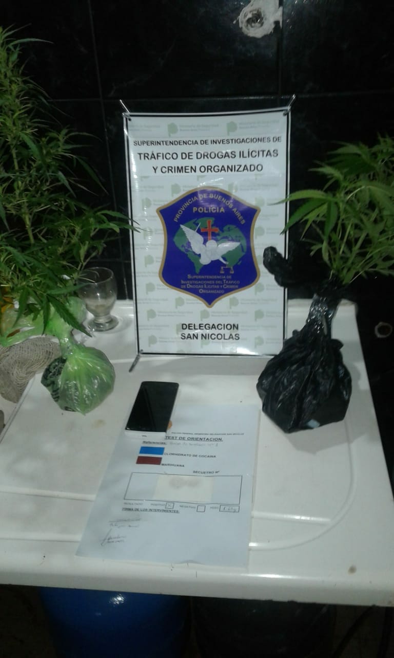 Los resultados fueron positivos: se secuestraron tres plantas de cannabis sativa, un bloque de marihuana compactada que supera los 100 grs, 50 envoltorios de nylon con cocaína listos para su comercialización, utensilios con vestigios de la misma sustancia, teléfonos celulares, 10 proyectiles calibre 22; también se procedió a la aprehensión de dos mayores de edad (un hombre y una mujer), que permanecen alojados en la comisaría local y el día de la fecha serán trasladados a sede judicial a los fines de receptarles declaración a tenor del 308.