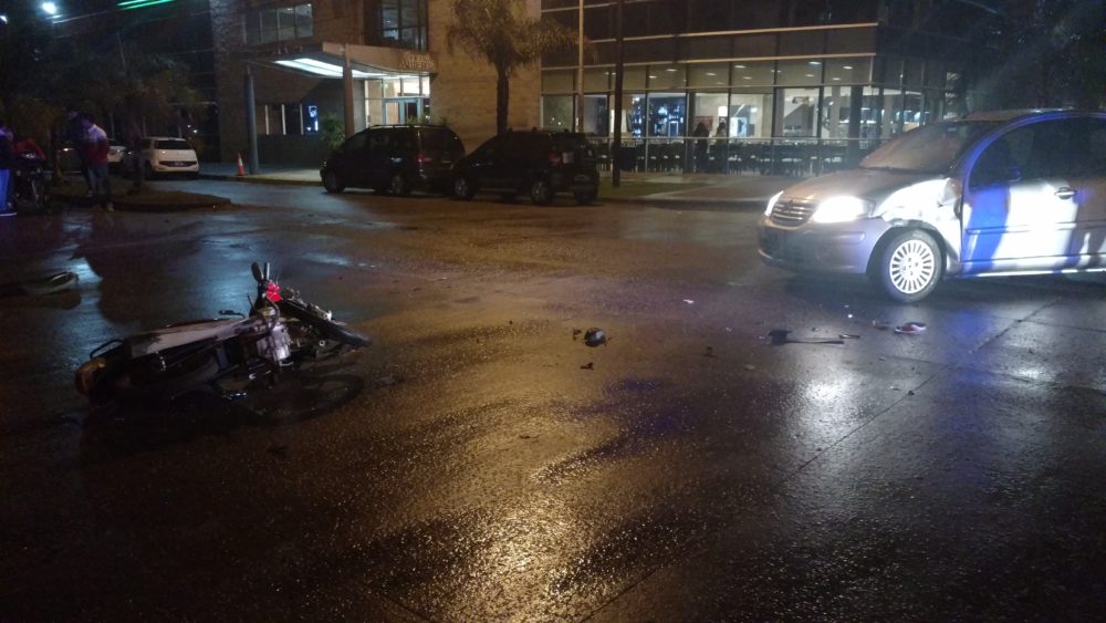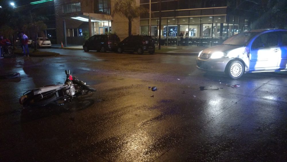 En la noche de este martes pasadas las 23:00 hs se produjo un nuevo accidente de tránsito en la esquina de la Av. 3 de Febrero y Dipietri, donde una motocicleta Zanella ZB 110 cc en la que circulaban dos jóvenes mayores de edad colisionaron contra un automóvil Citroën C3 color gris dirigido por una mujer mayor de edad.