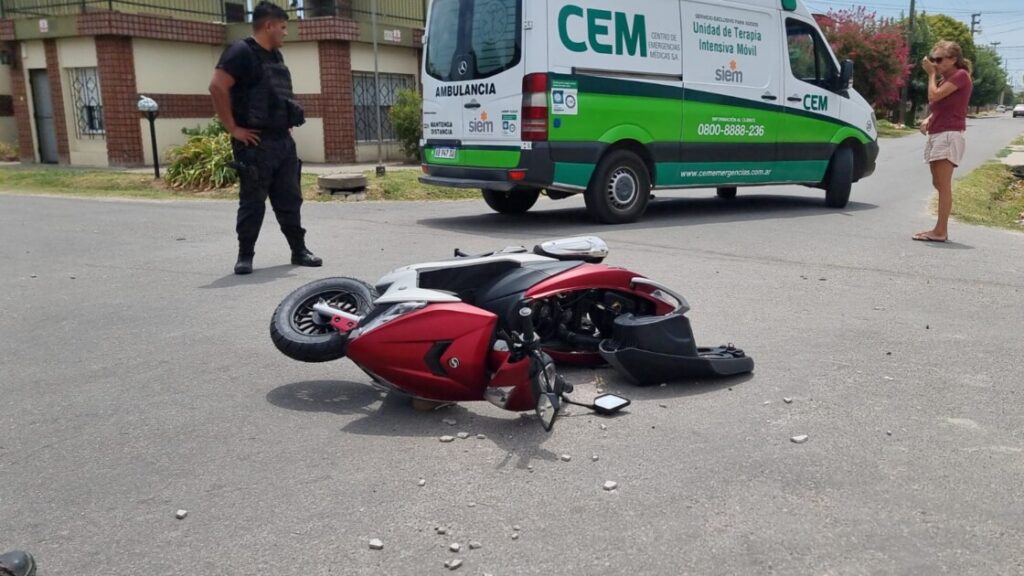 El choque ocurrió al mediodía entre una moto tipo scooter y un auto. La joven fue asistida por el CEM y trasladada al hospital para controles.