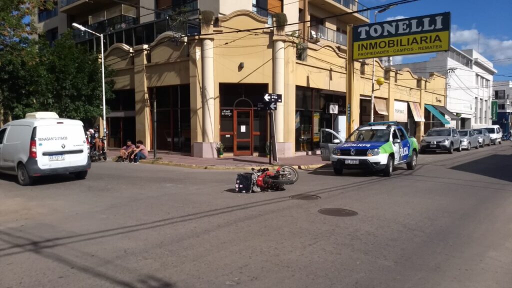 Este miércoles alrededor de las 15 hs se produjo un siniestro vial en la esquina de Mitre y San Martin donde por motivos que se tratan de establecer un mensajero que circulaba en una motocicleta 125 cc colisiono con una camioneta Renault Kangoo color blanca.