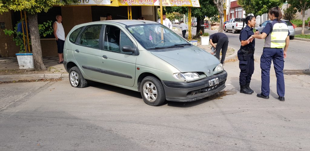 En la esquina de San Martín y Nuestra Señora de Socorro se produjo un accidente de transito entre un automóvil Seat Ibiza color gris conducido por un ciudadano mayor de edad que circulaba por calle San Martin a gran velocidad impactando en la rueda trasera de un automóvil Renault Megane color verde en el que circulaba un hombre mayor de edad.