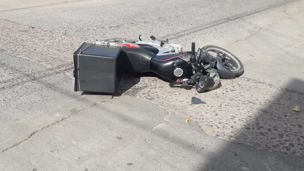 El siniestro tuvo lugar esta mañana pasadas las 10:30 hs en la esquina de Salta e Irlanda donde una mujer que circulaba en una motocicleta Zanella 125 cc quien se desempeña como mensajera colisiono con una camioneta Amarok color blanca conducida por otra femenina.