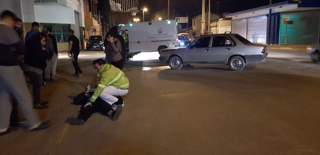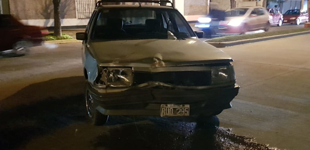 Por razones que se tratan de establecer, un vehículo Renault 18, conducido por ciudadano de 68 años de edad, colisionó con una motocicleta Honda CG 150 cc, guiada por ciudadano de 25; según contó un testigo a este medio, «el chico de la moto voló por encima del auto, fue un choque fuertisimo».