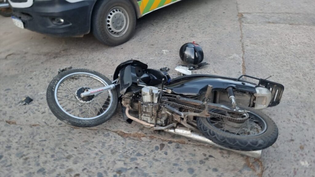 Un motociclista de 18 años fue trasladado al Hospital tras colisionar con un automóvil en la intersección de Avenida 3 de Febrero y Almafuerte.