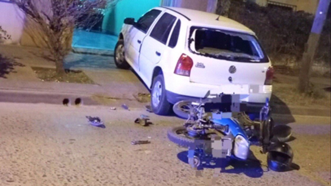 Por razones que aún se intentan establecer, una motocicleta Gilera Smash 110cc color azul, conducida por un hombre de 38 años, colisionó contra un automóvil Volkswagen Gol blanco, al mando de una mujer de 73 años.