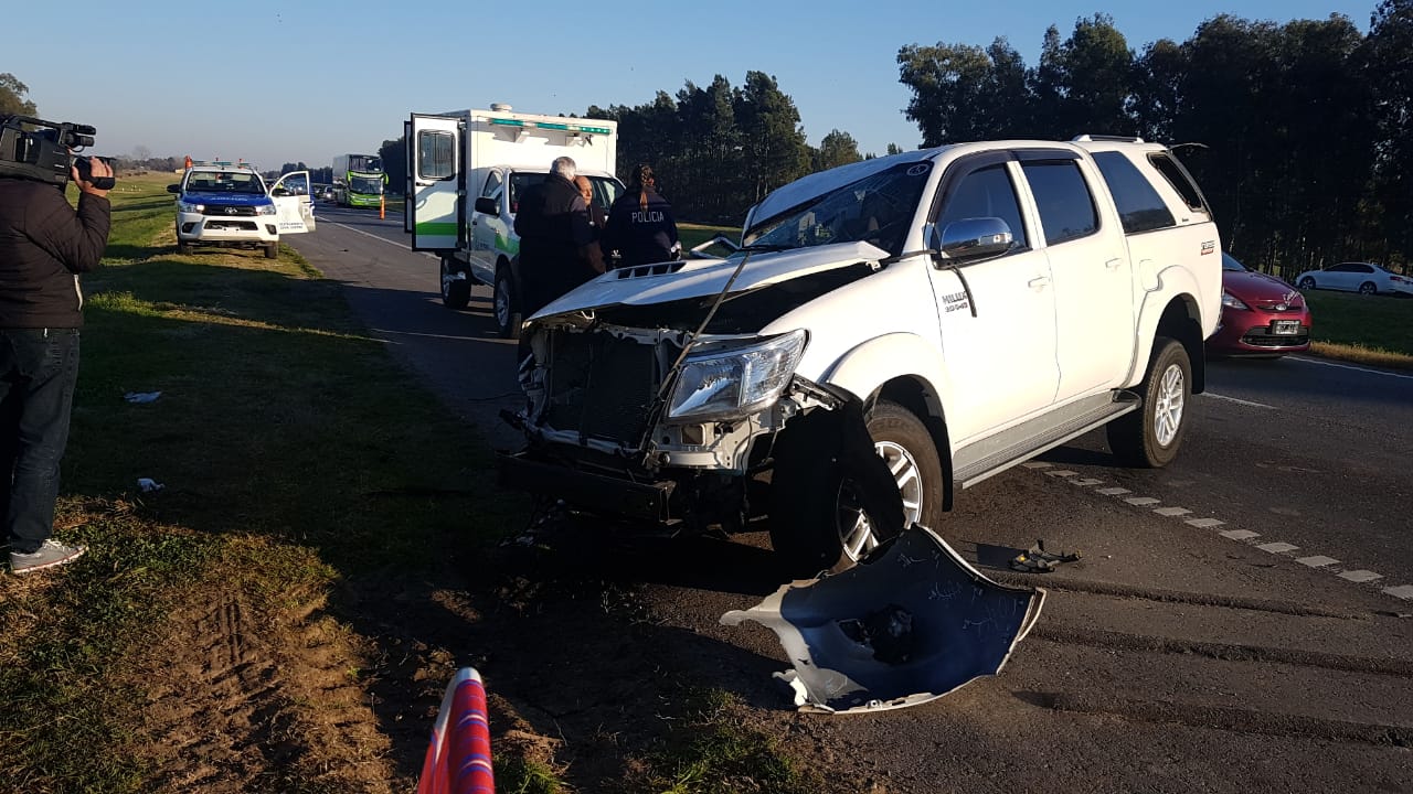 Como consecuencias el vehiculo de mayor porte queda estacionado sobre banquina mientras que la Pick Up queda detenida sobre carril lento reduciendo la calzada en cuanto al transito vehicular.