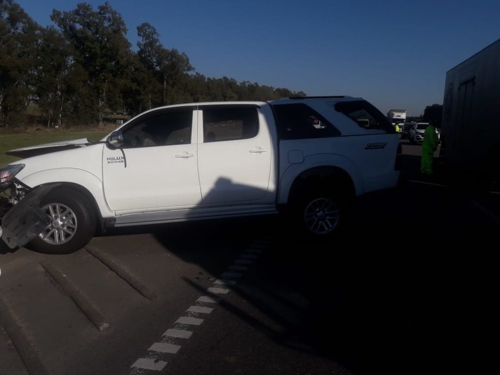 El camión color blanco, arrastrando semirremolque cargado de chatarra guiado por el ciudadano masculino mayor de edad oriundo de San Nicolas, el cual fue colisionado en la parte lateral izquierda por Pick Up marca Toyota modelo Hilux 4×2 de color blanco, 345, guiado por otro ciudadano mayor de edad, oriundo del gran Buenos Aires, acompañado por familiares, dos mujeres mayores y un menor de edad.-