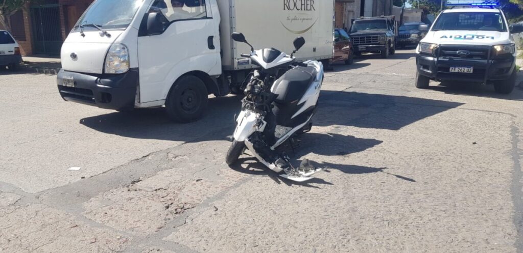 Cerca del mediodía de este lunes se produjo un accidente en la esquina de Mitre y N. de Torres, entre una moto tipo Scooter y una camioneta marca Peugeot.