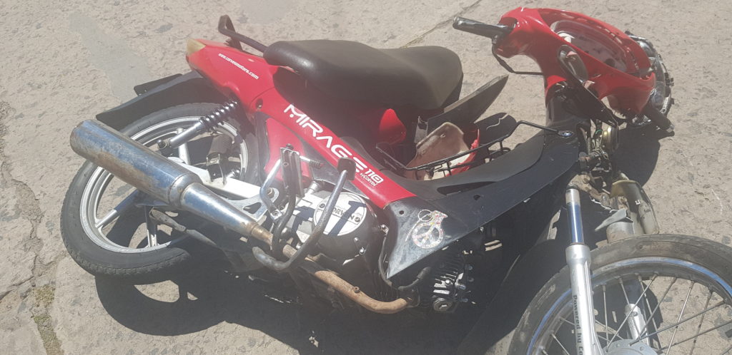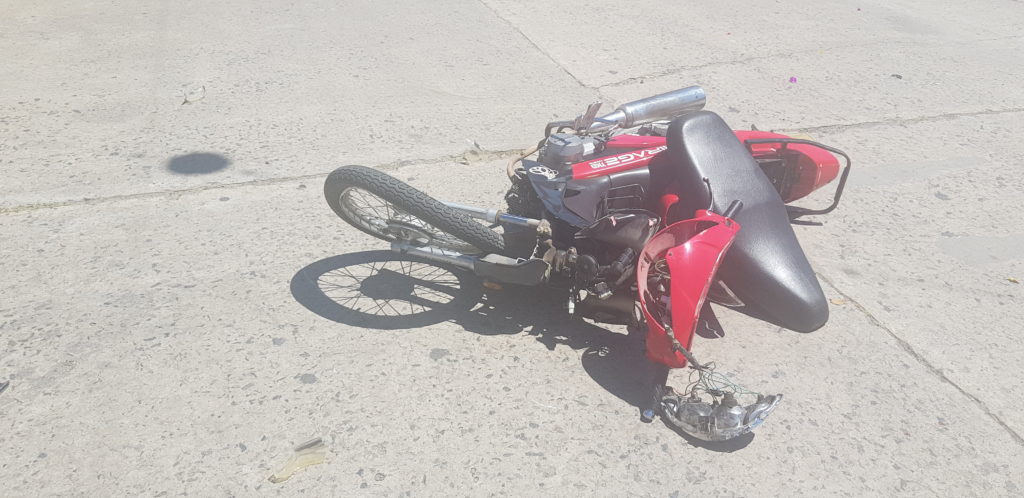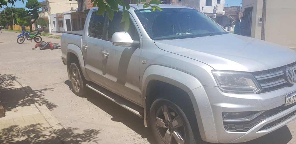 El siniestro tuvo lugar en la esquina de Ayacucho y Ansaloni, donde una motocicleta Corven Mirage 110 cc color roja colisionó contra una camioneta Volkswagen Amarok color gris perteneciente a un importante dirigente sindical de nuestra ciudad.