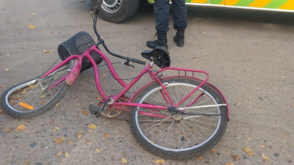 Esta mañana de martes pasadas las 11 hs se produjo un siniestro vial donde una motocicleta Yamaha YBR color negra perteneciente a un mensajero hombre mayor de edad colisiona contra un hombre mayor que circulaba en su bicicleta.