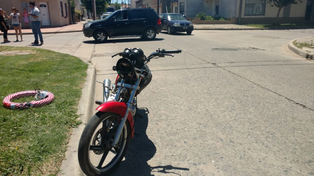 El siniestro ocurrió cuando a una motocicleta 125 cc. conducida por una mujer de 36 años que circulaba por calle San Martín se le cruza una camioneta Ford Ecosport conducida por una joven mayor de edad que circulaba por calle Chivilcoy.