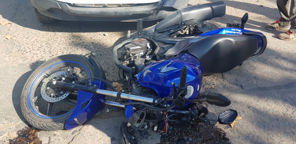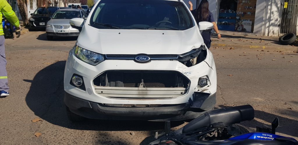 Donde por razones que se tratan de establecer una camioneta Ford Ecosport blanca conducida por femenina de 40 años, colisiona con motocicleta Honda 150 cc conducida por un masculino de 22 años.