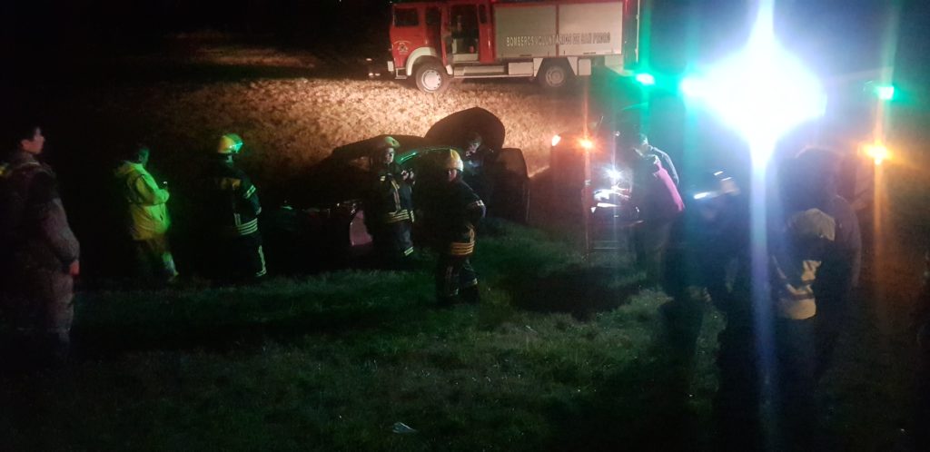 El accidente habría ocurrido cuando el utilitario circulaba por el carril lento y es impactado desde atrás por el automóvil perdiendo el control despintando, por su parte el otro automóvil quedo volcado sobre la autovia.