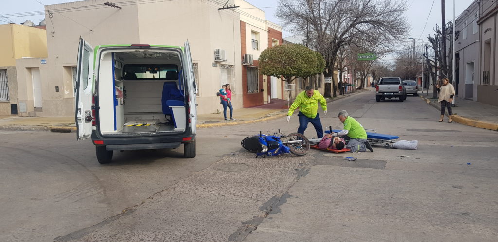 El conductor de una motocicleta que impacto contra la puerta trasera de una camioneta Amarock, en intersección de las calles Facundo Quiroga e Ituzaingo, se encuentra en terapia intensiva en grave estado de salud.
