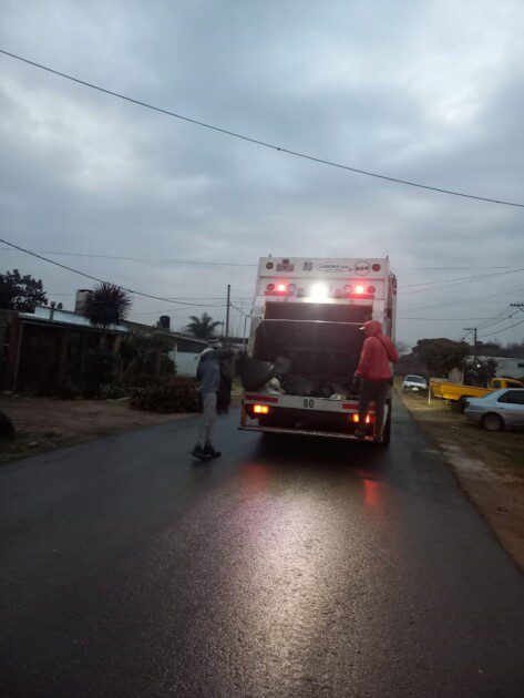 Las actividades incluyen la recolección de residuos urbanos en distintos sectores de la localidad, el mantenimiento de espacios verdes y la recolección de ramas y hojas acumuladas para evitar obstrucciones en desagües y cunetas.