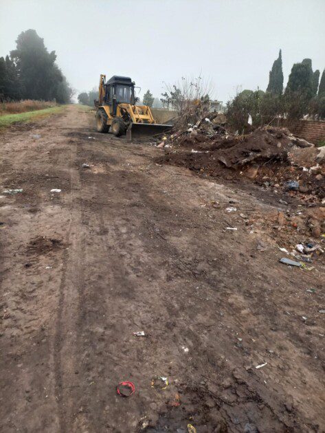 Limpieza detrás del cementerio: Se está utilizando una retropala para limpiar el área detrás del cementerio local.