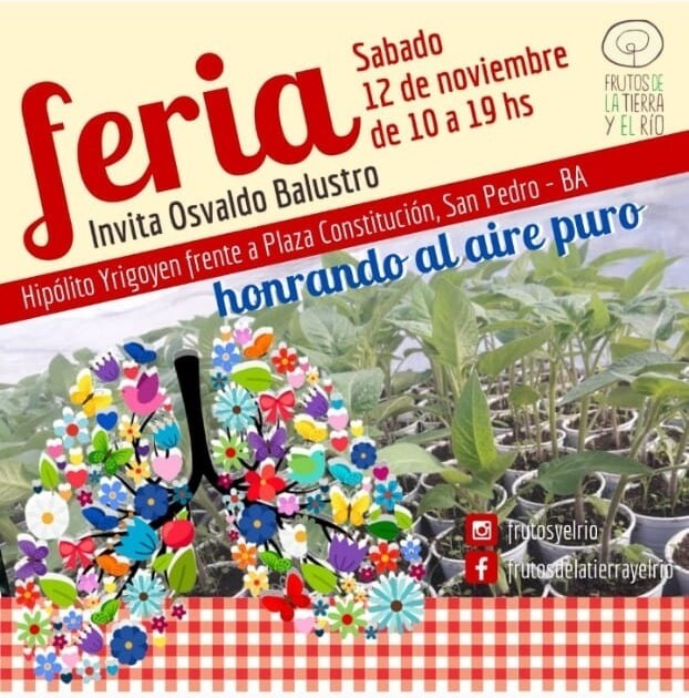 10.00 hs. Feria Frutos de la Tierra y el Río frente a la Plaza Constitución hasta las 19.00 hs. (Actividad sujeta a reprogramación por condiciones climatológicas)