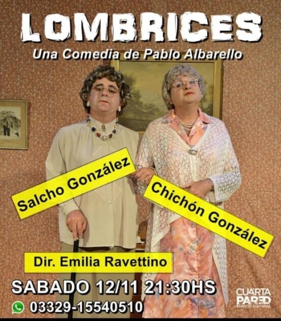21.30 hs. En la sala Cuarta Pared, ubicada en Independencia 425, se presenta la obra “Lombrices”. Para reservas contactar con el 03329-15540510.