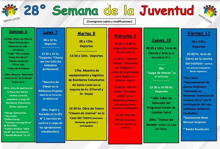 8.00 hs. Actividades deportivas en Santa Lucía por la Semana de la Juventud.