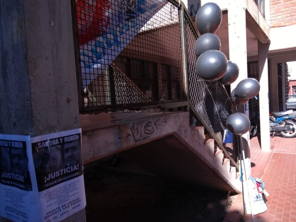Está mañana se realizó un acto en las puertas del consejo escolar, en conmemoración convocado por el Frente de unidad docente San Pedro, a un año del trágico accidente en la Escuela Nº 49 de Moreno, donde perdieron la vida Sandra Calamano y Rubén Rodriguez, trabajadores de la educación.