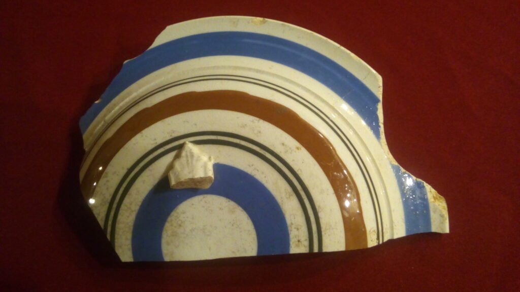 El resto del conjunto se complementa con una manija de balde de aljibe, partes de un jarrón blanco de porcelana ornamentado en azul, una tapa en porcelana con círculos concéntricos en diferentes colores, un antiguo mate de latón, fragmentos de ollas de fundición, una manija de una pava de gran tamaño y demás elementos.