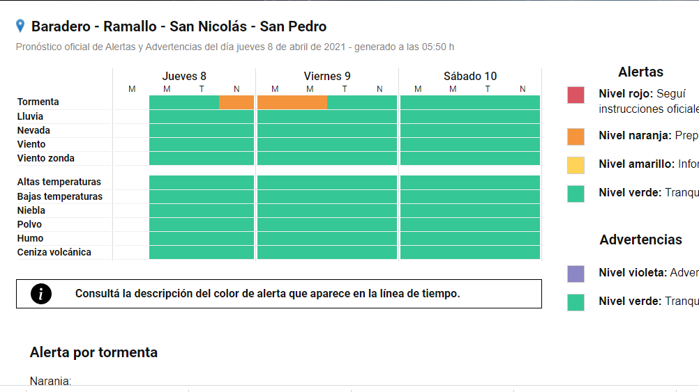 Este jueves el SMN emitió un alerta meteorológico nivel naranja por tormentas fuertes para la capital bonaerense y el resto del AMBA. Afecta a San Pedro y la zona.