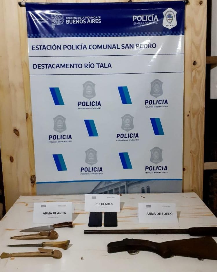 Se procedió al secuestro en las tres viviendas de cortes cárnicos irregulares, teléfonos celulares, elementos de faena y en una de ellas una escopeta de un caño calibre 16, además también se pone a disposición de la justicia una mujer y un hombre mayores de edad los cuales quedaron imputados por el delito de “abigeato agravado”, mientras que un tercer ciudadano de 24 años quedó aprehendido y trasladado a sede Comisaría San Pedro, quedando imputado por el delito de “abigeato agravado y tenencia ilegal de arma de fuego”.