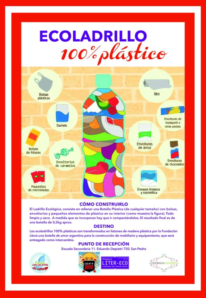 El aula de 4to año de la secundaria 11 Eduardo Depietri iniciaron un proyecto donde podrán armar ladrillos ecológicos, los alumnos lo denominaron «Llena una botella de amor».