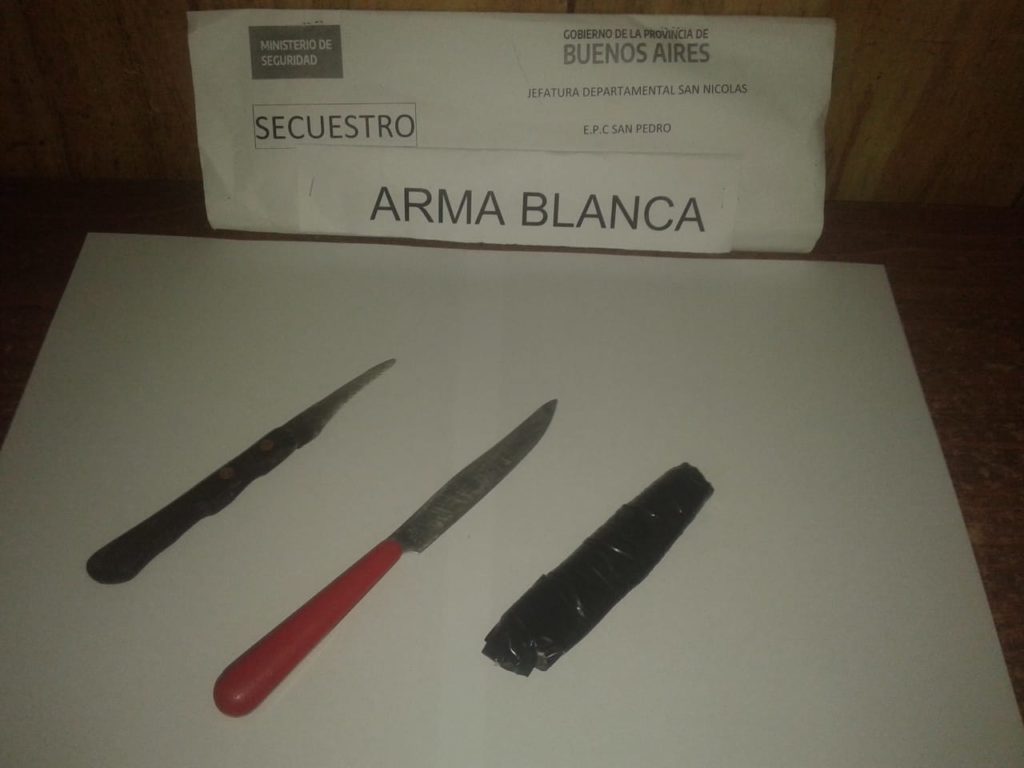 Es miércoles el personal policial de San Pedro, procedió a la aprehensión de masculino 22 años, quien se encontraba en Auli y Bottaro, intentando darse a la fuga de un control policial secuestrandose en su poder dos armas blancas.