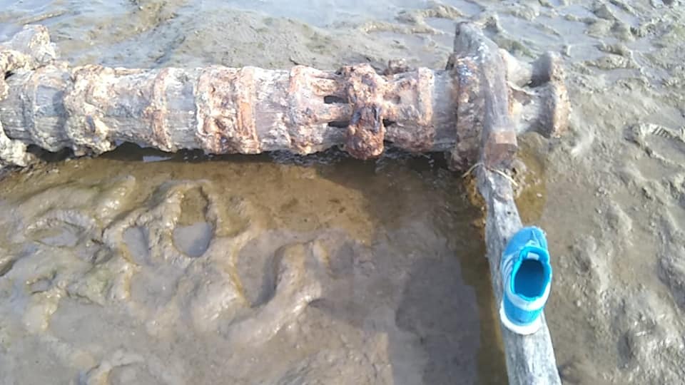 Aparenta ser un cabrestante de navío antiguo, por lo que se dio aviso al municipio local y a la Prefectura Naval Argentina del destacamento de Vuelta de Obligado.