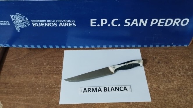 En una intervención policial realizada ayer a las 12:40 horas en la calle Bozzano y Fray del Pozo, se logró la aprehensión de un hombre de 22 años que portaba un arma blanca durante un conflicto vecinal reportado al 911.