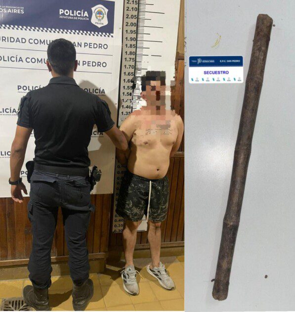 Según informaron, al arribar al lugar los efectivos encontraron al agresor intimidando con un palo a su pareja, una mujer de 34 años, en presencia del progenitor de la víctima, de 63 años. Ambos habían sido agredidos físicamente momentos antes del arribo del móvil policial.