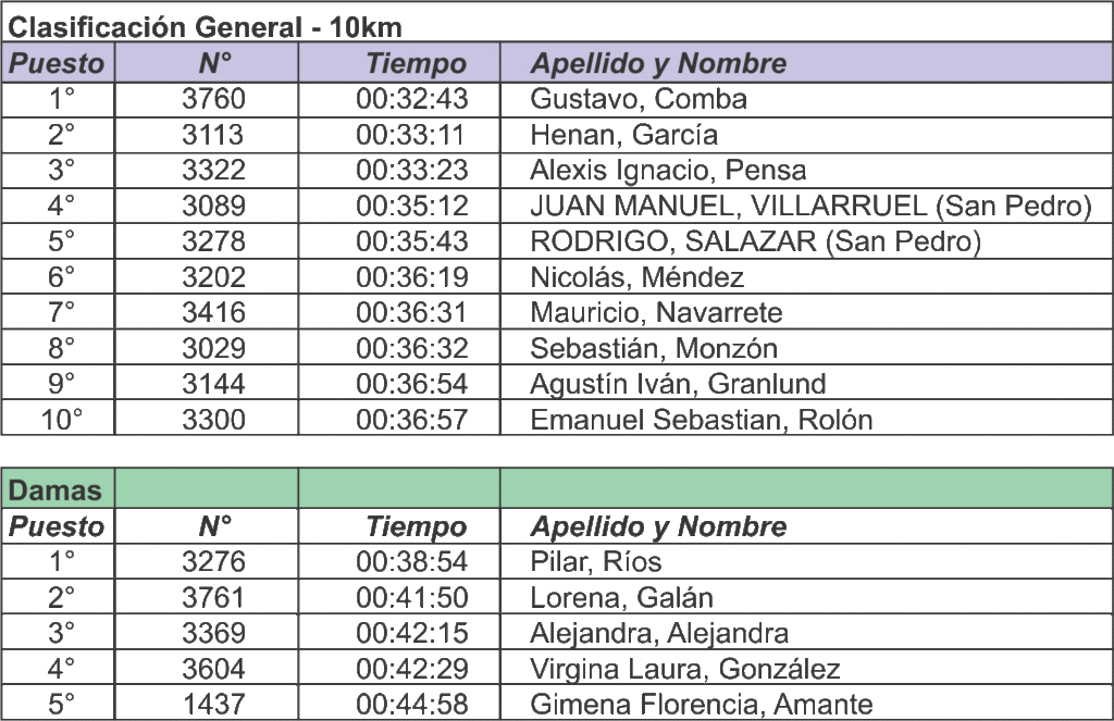 Una de las más tradicionales citas deportivas de Campana se realizó el domingo en los 10k Tenaris, siendo la 14ª edición de esta prueba que se divide en dos: los 10 kilómetros que recorren gran parte del casco céntrico y los 3 kilómetros que tienen un sentido competitivo también, pero sobre todo una gran participación familiar que completa este trazado reducido caminando, en bicicletas y hasta con cochecitos de bebé. Dos sampedrinos, entre los muchos que participaron lograron ubicarse entre los cinco mejores, con gran actuación. Juan Villarruel, quien terminó cuarto esta residiendo en Escobar y detrás, el juvenil Salazar.