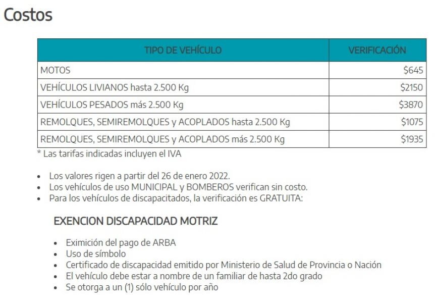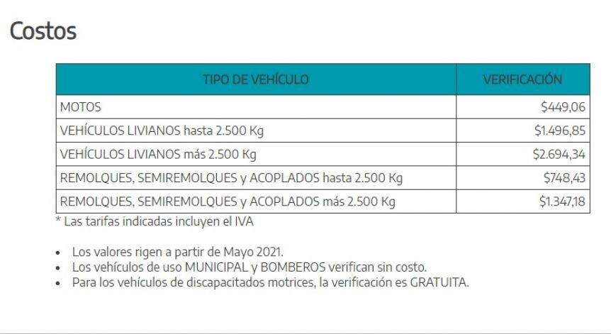 Asimismo, dispuso «establecer que a partir de la tarifa básica aprobada por el artículo anterior, se conformarán las restantes categorías del cuadro tarifario del servicio de verificación técnica vehicular».