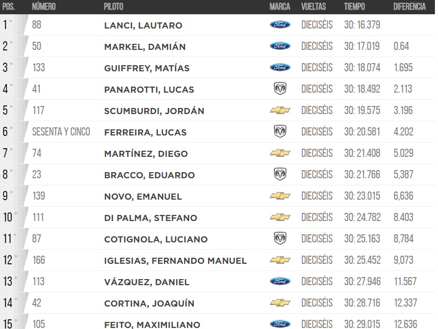 En el autódromo Roberto Mouras de La Plata, el TC Pista Mouras corrió su segunda fecha de la edición 2017 del certamen. Lautaro Lanci se quedó con el tercer entrenamiento del TC Pista Mouras en La Plata escoltado Di Palma y Markel. El sampedrino Fernando Manuel «Morro» Iglesias culminó duodécimo con un desempeño parejo a lo largo de las 16 vueltas, dejando conforme a la familia Iglesias. La próxima competencia será el 23 del actual a confirmar el circuito.