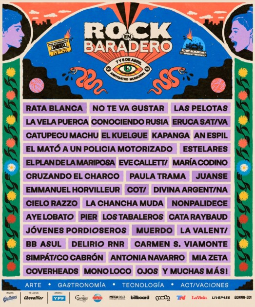 También habrá talentos under, como Coverheads, La Chancha Muda y Delirio RNR, y voces emergentes para las que Rock en Baradero significará una ventana a nuevos públicos: Mía Zeta, La Valenti, BB Asul, María Codino, Carmen Sánchez Viamonte, Divina Argentina, Eve Calletti, Cata Raybaud, Paula Trama, Antonia Navarro. Y estarán los artistas locales Mono Loco, Aye Lobato, Simpático Cabrón y Ojos.