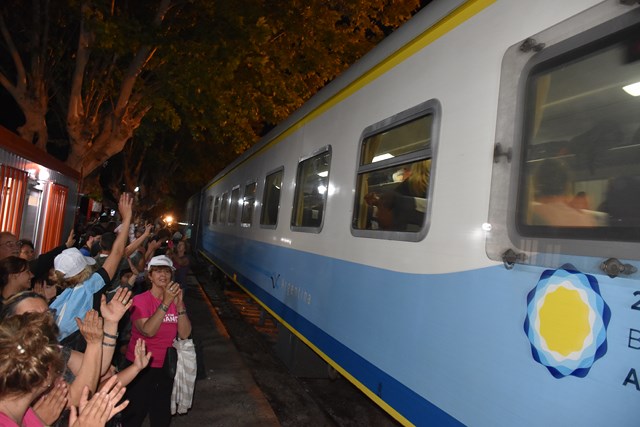 Aproximadamente a las 20:25 detuvo su marcha el tren que traía a la intendenta municipal y una delegación de funcionarios.
