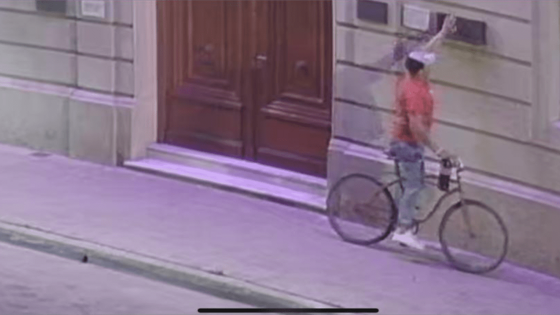 Este martes se conoció por redes sociales el video de un delincuente que robo la placa idetificatoria de la Biblioteca Popular Rafael Obligado, en el mismo se puede ver como esta persona llega en su bicicleta y extrae la placa de metal empotrada en la pared.