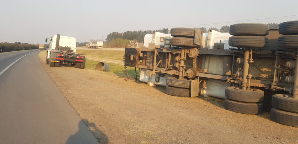 El hecho tuvo lugar en la ruta nacional 9 Km 155 esta tarde de martes, afortunadamente no hubo lesionado ya que solo se volcó la tolva del semi.