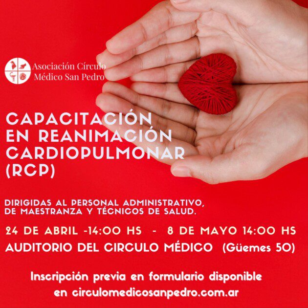 Inscripción requerida en formulario disponible en nuestro sitio web https://circulomedicosanpedro.com.ar/ o utilizando este enlace: https://bit.ly/3vFtQTz.
