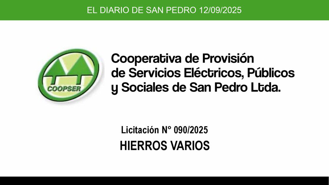 SEGUROS GENERALES Apertura: 27 Octubre 2025 a las 11:00 hs. Informes y retiro de documentación de lunes a viernes de 7:00 a 13:00 hs. en Rómulo Naon 2499, Oficina de Compras, Obrador Coopser San Pedro o en www.coopser.com.ar . Tel 03329-431300 int 335/336