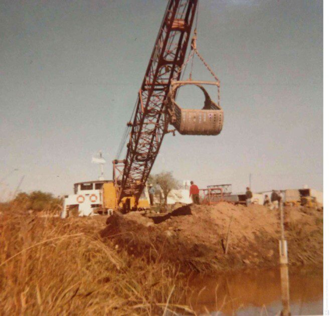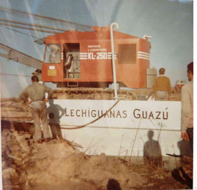 Las imágenes, capturadas por el fotógrafo Hugo Verdón, quien integraba el grupo de trabajadores contratados por la firma, muestran la gran logística de medios, maquinarias y personal desplegados para la construcción de un ambicioso polo agrícola de gran envergadura en la zona.
