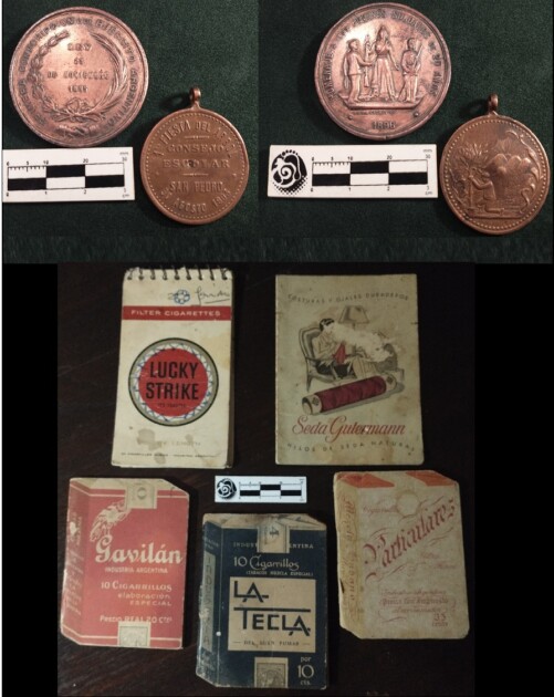 En primer lugar, José Correa acercó una medalla de 1896, conmemorativa de la Primera Conscripción del Ejército Argentino, pieza que recuerda a los primeros jóvenes que comenzaron a recibir instrucción militar para la defensa del país. Junto a ese objeto, también donó cinco publicidades antiguas en formato de pequeñas libretas de anotaciones, pertenecientes a reconocidas marcas de época como Lucky Strike, Seda Gutermann, Gavilán, La Tecla y Particulares.