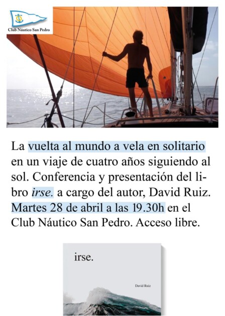La presentación estará a cargo de David Ruiz, navegante a vela y autor del libro “irse.”, quien compartirá su experiencia tras concretar un ambicioso proyecto: dar la vuelta al mundo en solitario durante cuatro años.