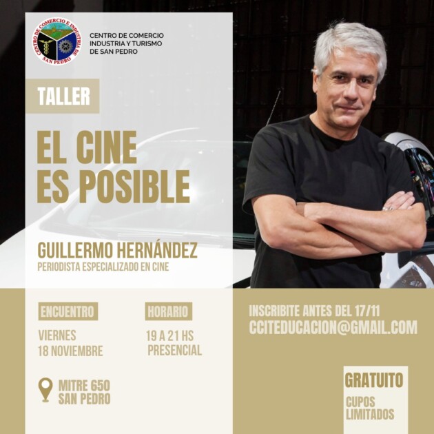 El Centro de Comercio, Industria y Turismo comparte con la comunidad una nueva propuesta cultural, en este caso con una charla en el Salón de los Espejos coordinada por el periodista sampedrino, Guillermo Hernández, especializado en cine y con una destacada trayectoria.