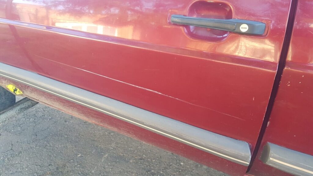 Se trata de un automóvil Volkswagen Gol, que su conductor quiso pasar mientras se desarrollaba un corte de tránsito, para resguardar a los estudiantes, en Uruguay y 3 de Febrero.