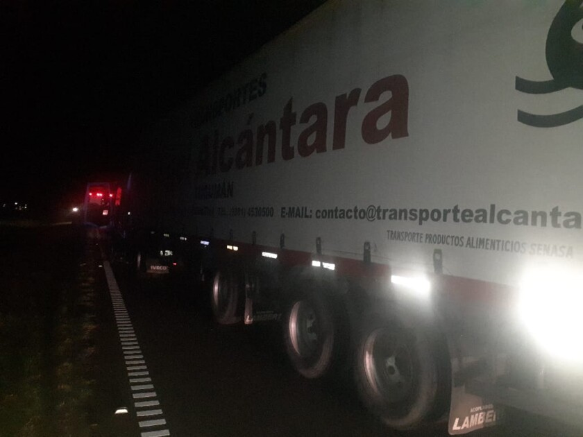 En la ruta 9 km 161 en el carril Rosario Buenos Aires por causas que se tratan de establecer colisionan vehículos camión Iveco 450 color blanco cargado con bolsas de azúcar conducido por un ciudadano de 29 años de la ciudad de Las Talitas, Tucumán choca con parte trasera de otro camión Ford Cargo 1722 color blanco semirremolque con carga arena a granel, conducido por un ciudadano de 34 años domiciliado en Olavarría.