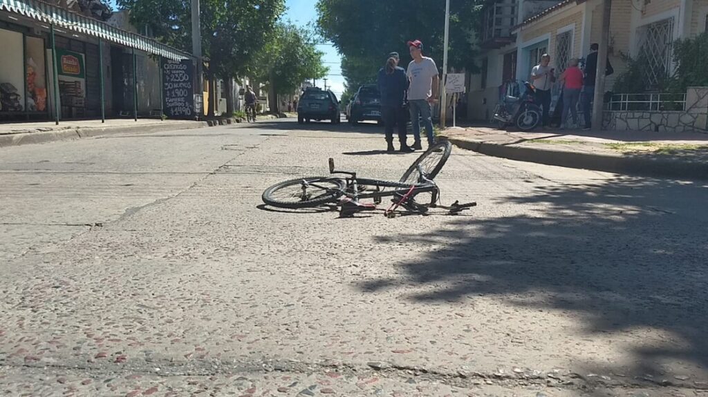 El hecho ocurrió en la esquina de Av. 3 de Febrero y Almafuerte, donde por razones que se tratan de establecer colisionaron un bicicleta conducida por una joven que impacto con un automóvil conducido por un joven.